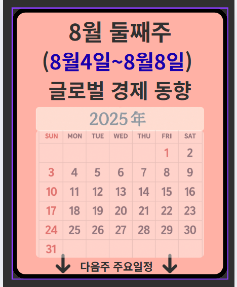 2025년 8월 둘째 주는 영국 중앙은행(BOE)의 통화정책 회의를 비롯해 전 세계 주요국의 핵심 경제 지표 발표가 집중되어 있어 글로벌 금융 시장의 중요한 변곡점이 될 것으로 보입니다.